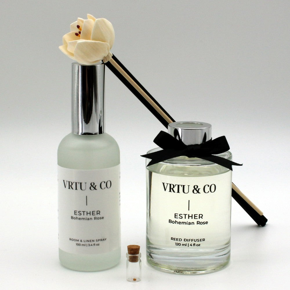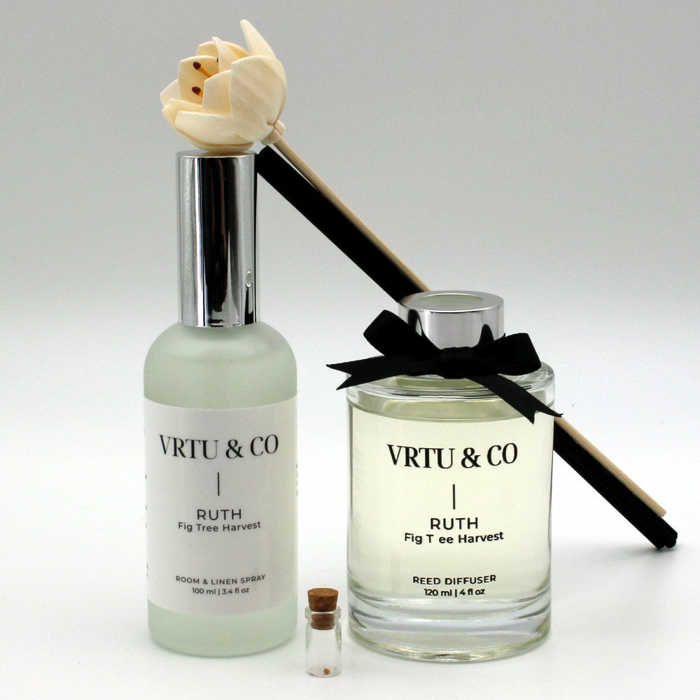 A luxurious selection created to bless every part of your home. Layer your chosen VRTU fragrance through diffuser, mist, and anointing oil — allowing a unified, elegant scent to usher in peace from room to room.