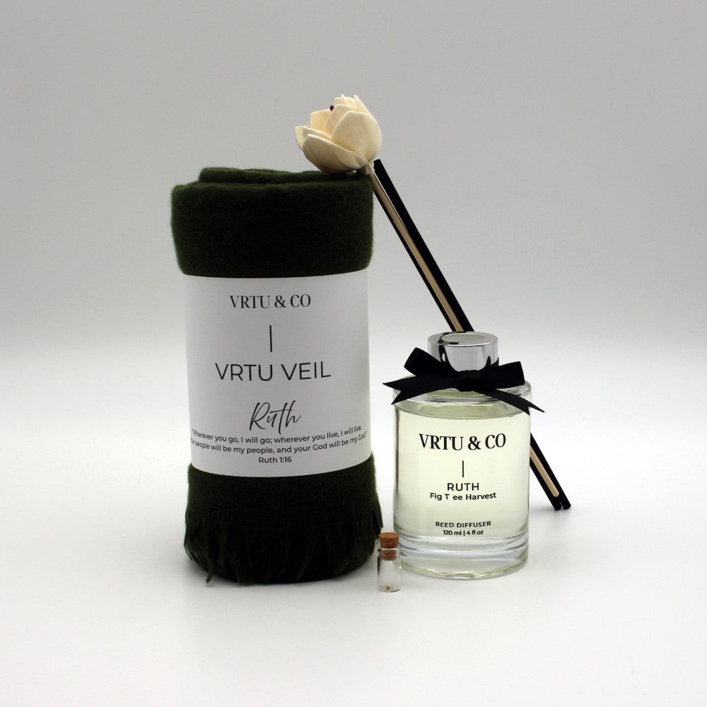 The Signature Diffuser releases a gentle, steady fragrance that shapes the atmosphere throughout the day, encouraging peace and awareness of the Lord’s presence. The Virtue Veil serves as a symbolic covering for moments of worship, journaling, and communion with Him. The mustard seed vial rests as a quiet reminder that faith — even in small measure — carries great power.